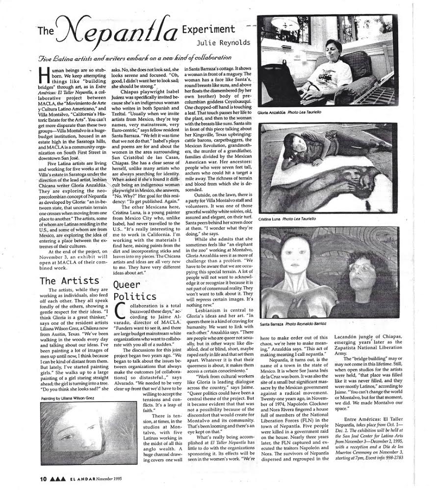 In February of 2020 Anel Flores was notified she received the Catalyst for Change Award from NALAC and the Surdna Foundation. Anel would use the award to create a residency and unlike past residencies Anel attended, except this residency would only be open to queer BIPOC people, no fees would be required to attend and we would receive a stipend. Months before we arrived the revolutionary energy that created La Otra Taller Nepantla would be what stirred the winds that we would ride on from our homes into this collective space and time.